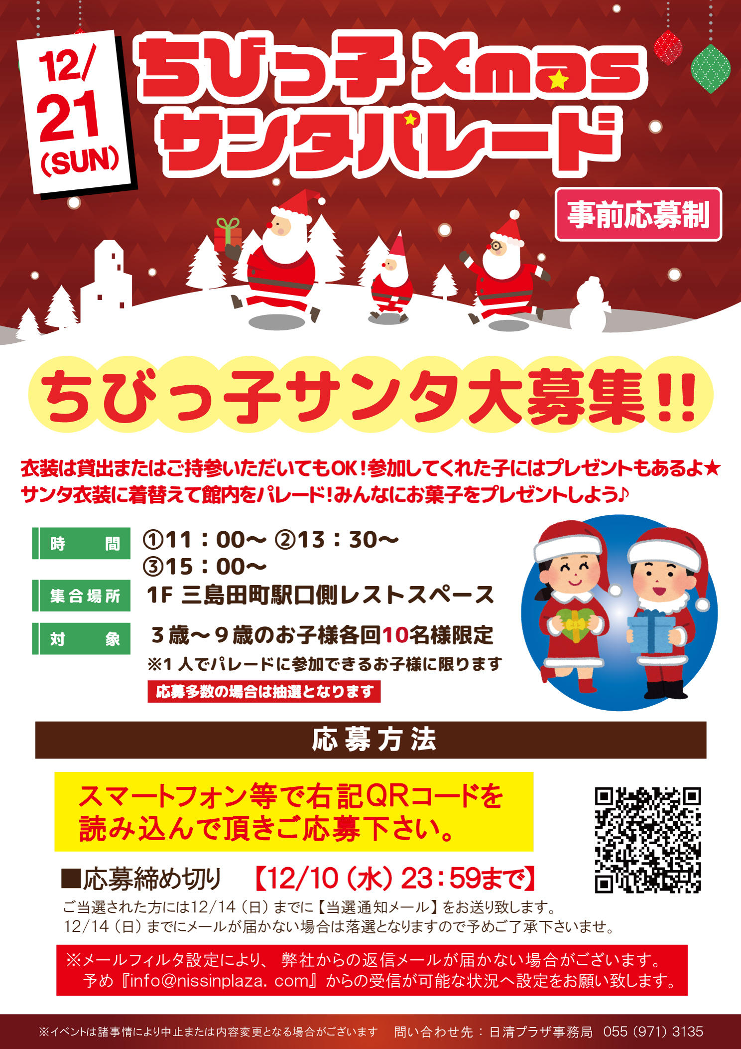 ホーム 新着情報12月21日(日)『ちびっ子Xmasサンタパレード』参加者大募集中!!