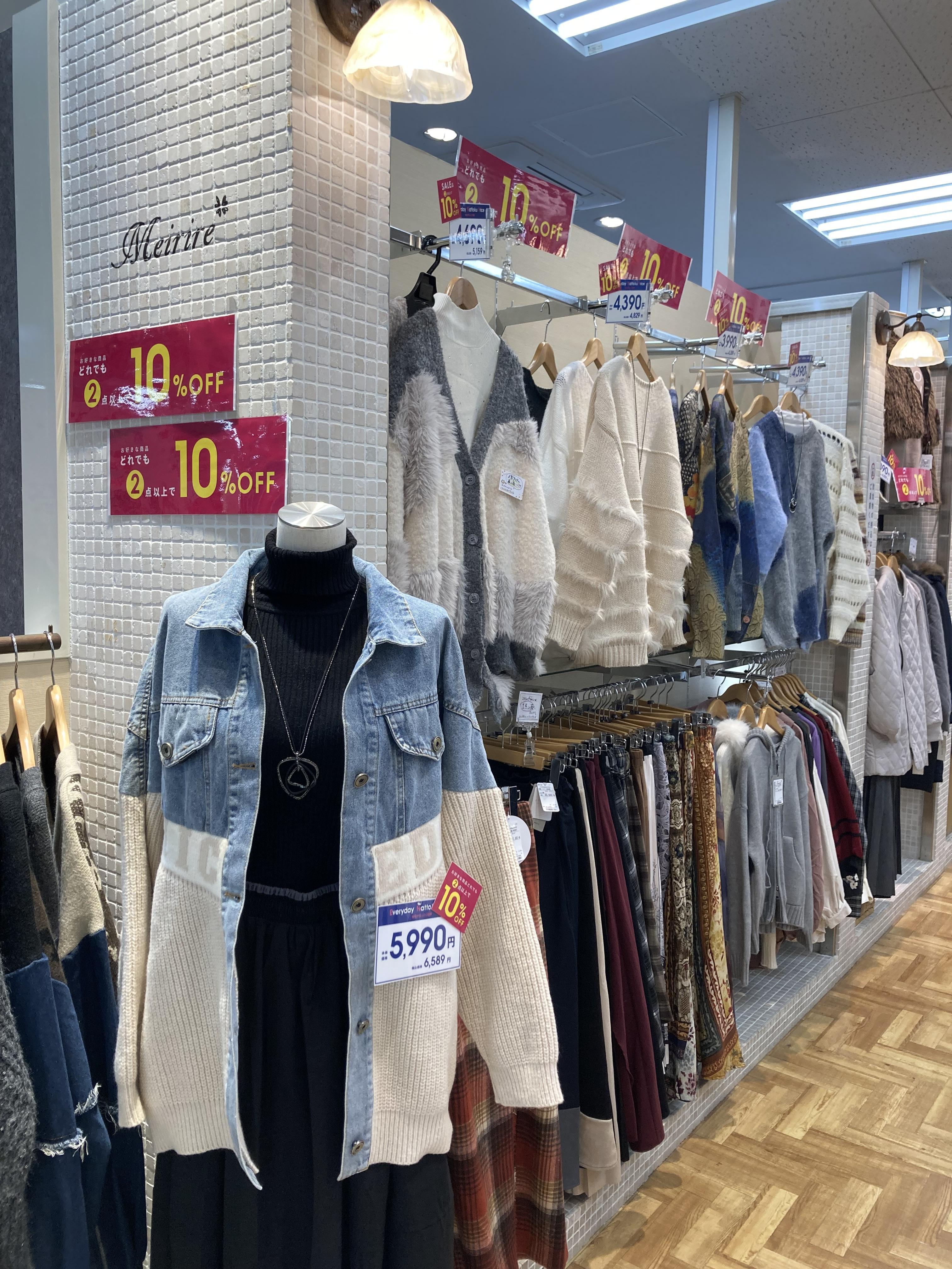 1F メイリールーでは12月25日(木)まで『クリスマス緊急割引・2点以上で10%OFF』を開催中です!!全品対象!人気商品もSALE商品もOK♪
